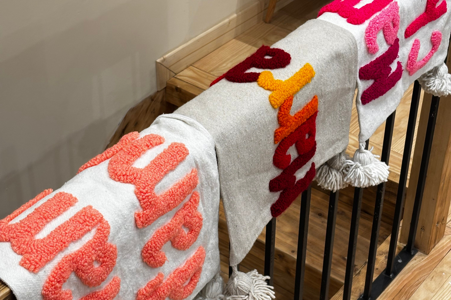 Coussin Berbère “Maman Chérie” 60x45 cm – Coussin décoratif fait main au Maroc avec pompons