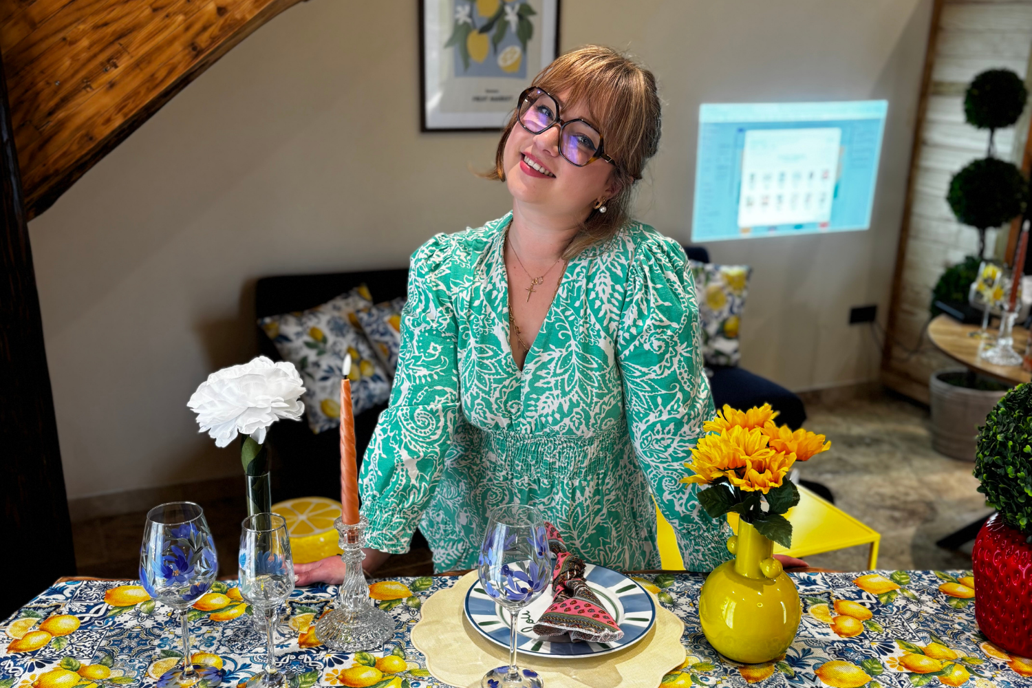 Ensemble Décanteur & Verres à Vin Peints à la Main – Collection Printemps Jaune